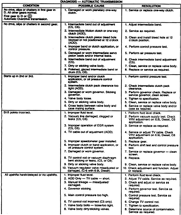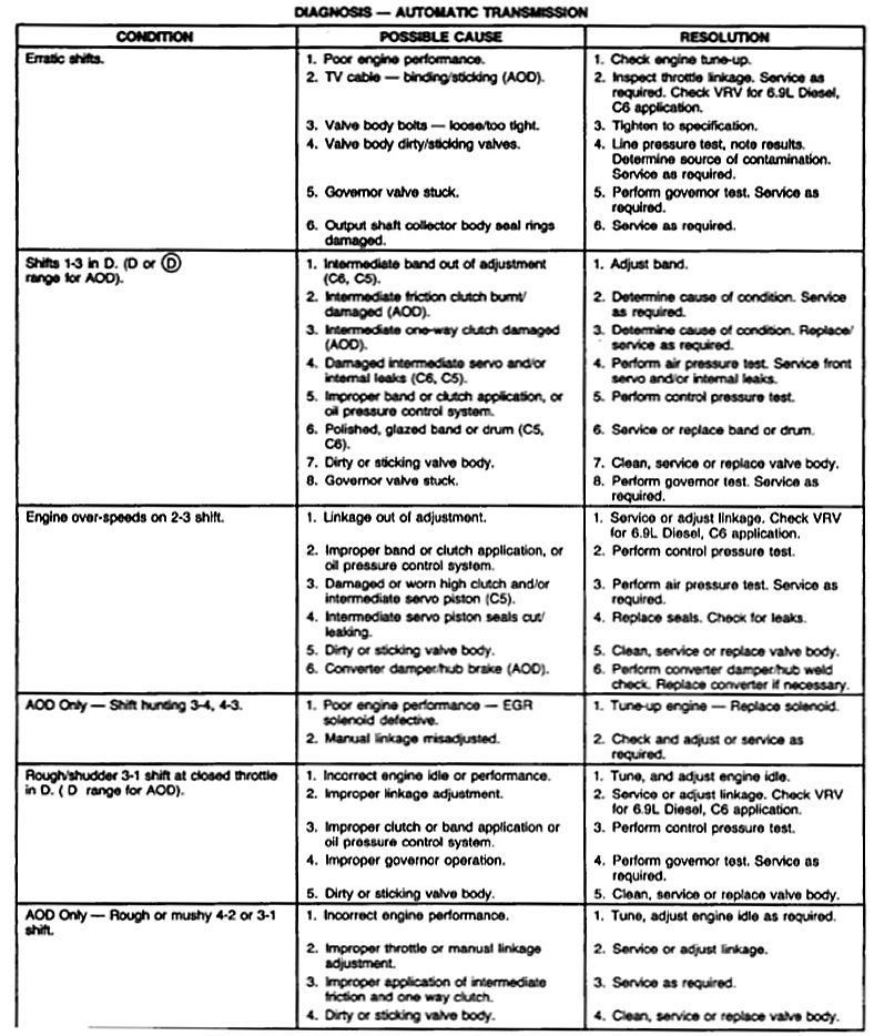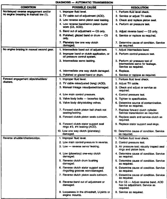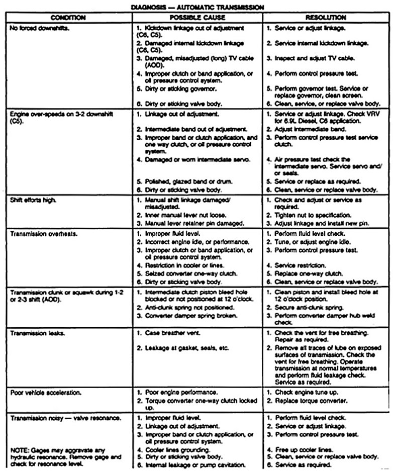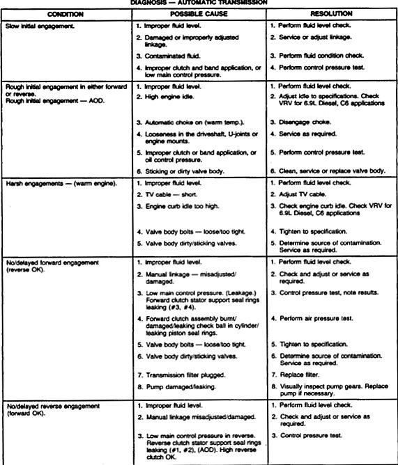 The diagnosis guides in this Section can be used as an aid when diagnosing automatic transmissions.