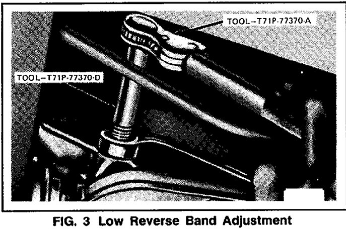 3. Tighten the adjusting screw using Band Adjusting Ratchet T71 P-77370-A and Socket T71 P47370-D or equivalent (Fig. 3). Tool T71 P-77370-A or equivalent, is a pre-set torque wrench which will FIG. 2 Intermediate Band Adjustment click when the torque on the adjusting screw reaches 13.5 N.m (10 lb-ft).