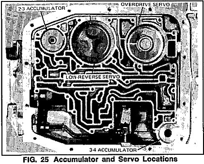 6. Install the overdrive piston, cover and spring into the overdrive servo pocket in the case. Make sure the servo rod contacts the band apply pocket while installing. Failure to do so will result in a no 3-4 shift condition.