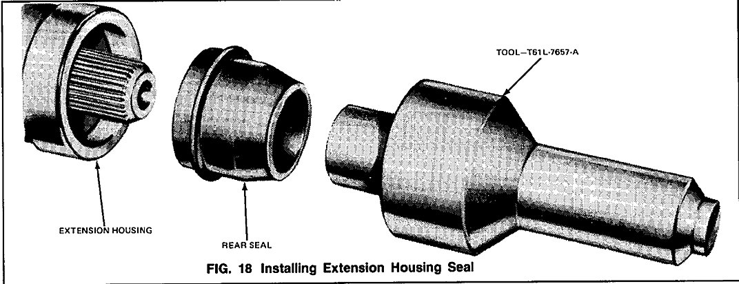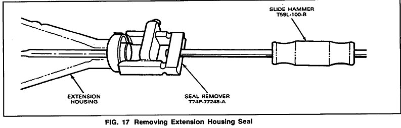 2. When only the rear seal needs replacing, carefully remove with Tool T74P-77248-A or equivalent as shown in Fig. 17.