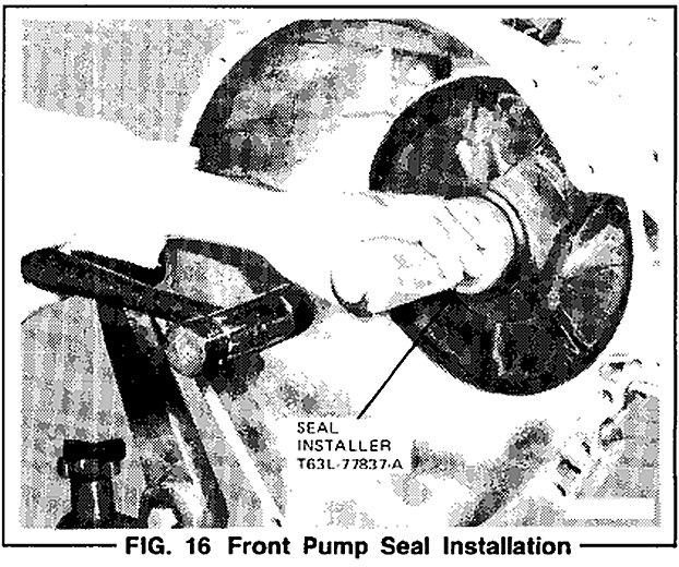 3. Install the seal using seal installer Tool T63L-77837-A (or equivalent) (Fig. 16).