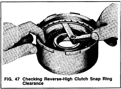 8. With a feeler gauge, check the clearance between the pressure plate and snap ring (Fig. 47).