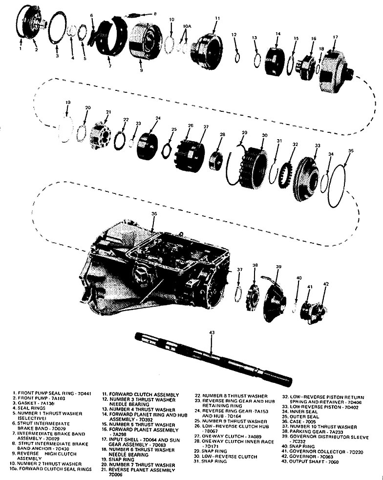 1. Remove the snap ring and bushing from the rear of the low-reverse clutch hub (Fig. 57).