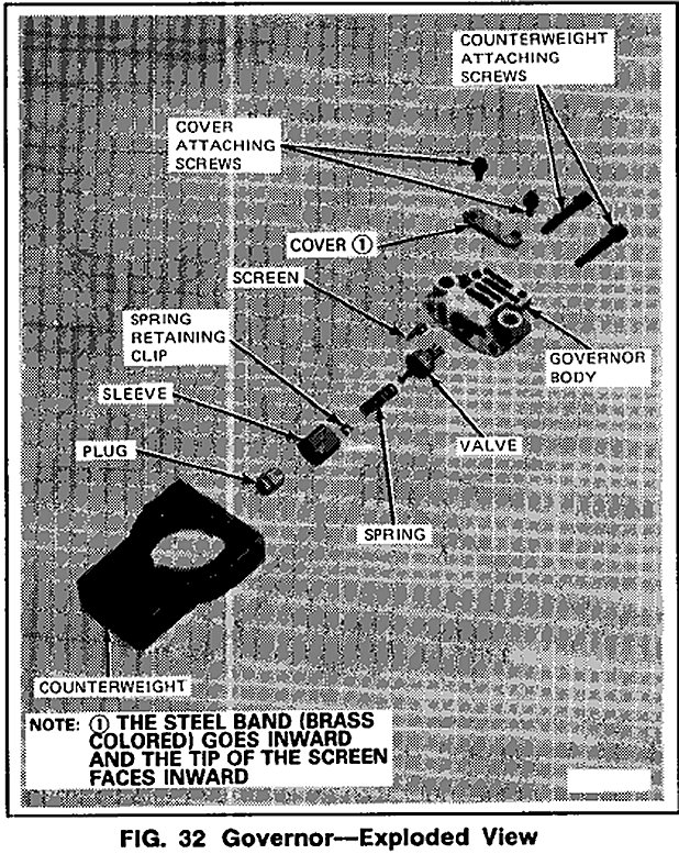 3. Remove the plug, the sleeve, and the valve from the governor body.