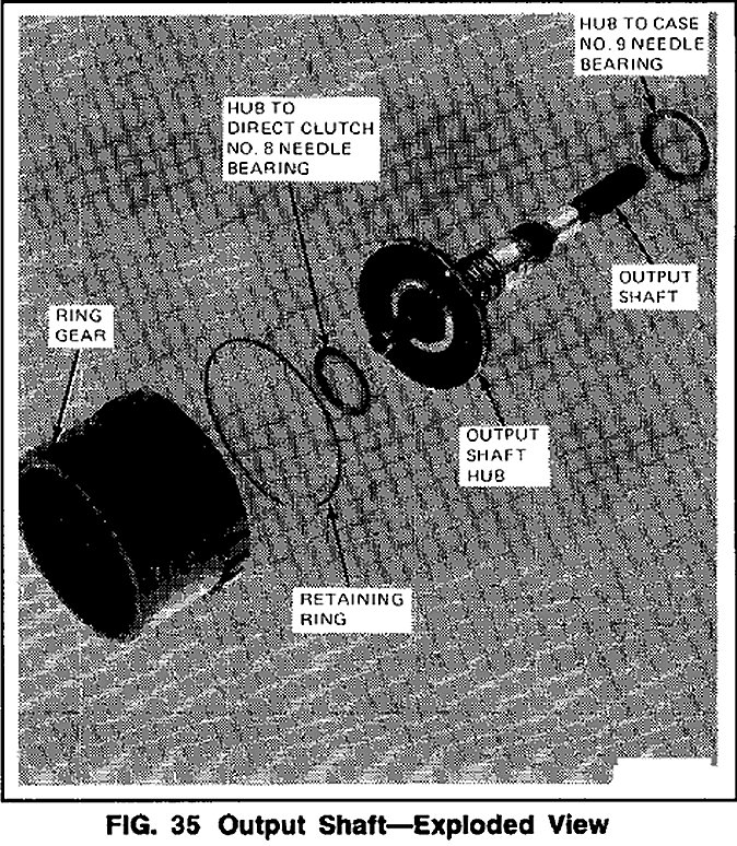 4. Remove the four output shaft seal rings and the hub-to-output shaft retaining ring. Separate the hub from the output shaft.