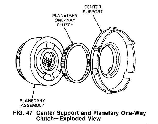 1. Remove the center support from the planetary carrier. Rotate the center support counterclockwise and lift to remove.