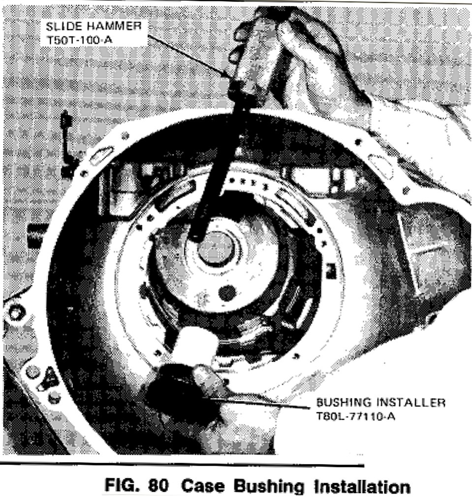 1. Position the replacement bushing on Bushing Installer T80L-7711O-A (Fig. 80) and install in the bushing bore through the front of the case.