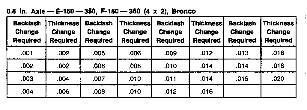 Ford 8.8 Inch, Carrier Backlash/Shim Thickness: