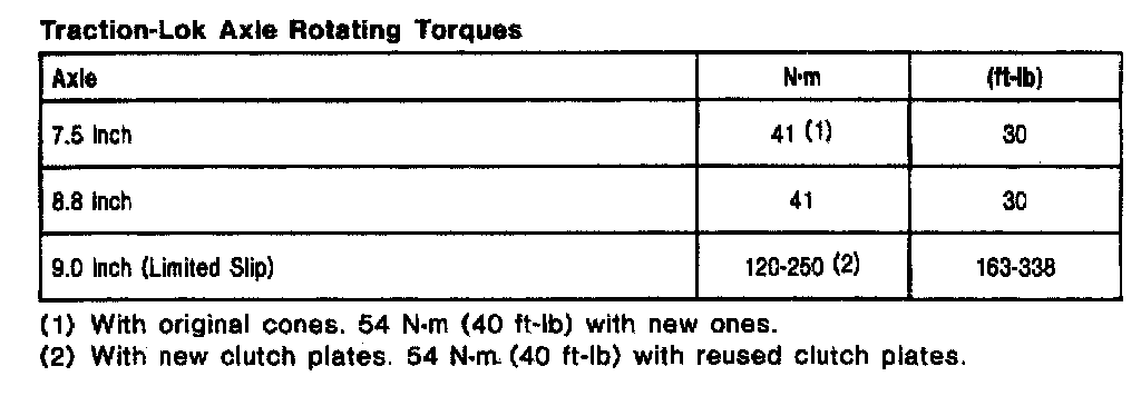 Ford Traction Lok 9.0, Rotating Torque: