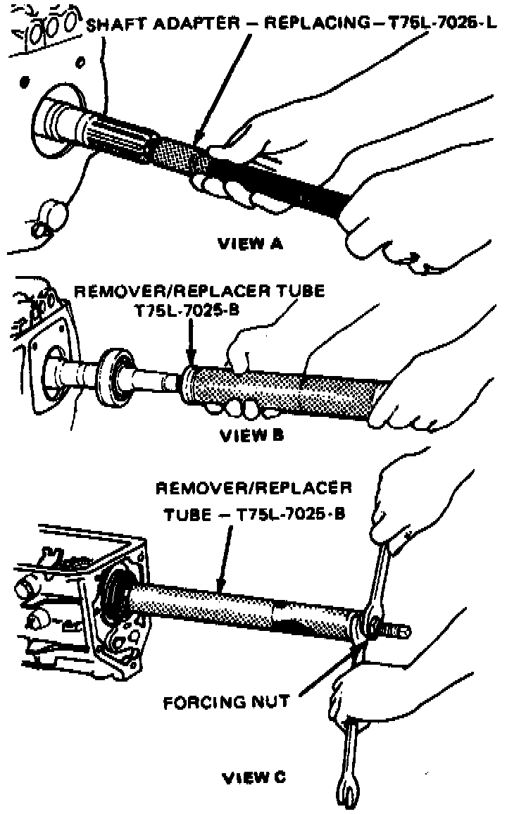 11. Install dummy bearing No. T75L-7025-Q or equivalent on transmission input shaft.