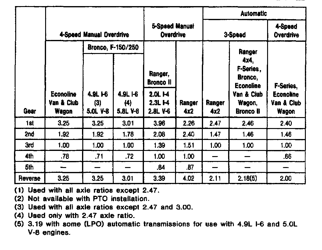 Ford 3.03 3-spd M/T, Clutch Chart (E-150-350, F-150-350):