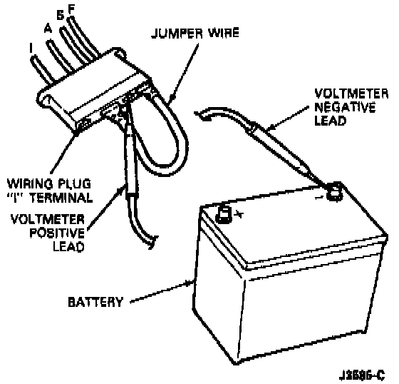 1. Disconnect the regulator wiring plug and install jumper wire between the A and F terminals.