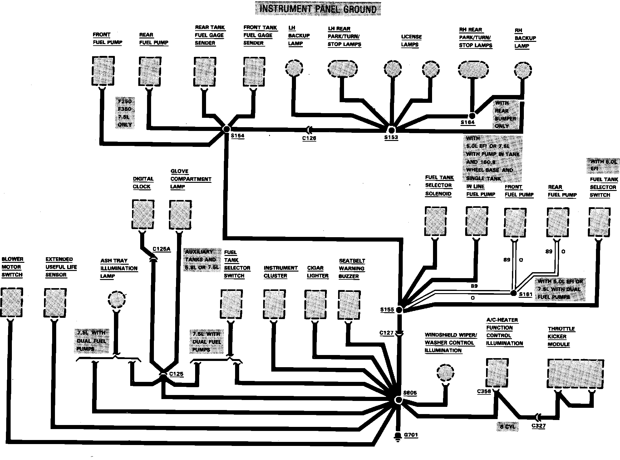 Fig. 32 Ground Distribution (G701) Wiring Circuit. F150-350 W/Gasoline Engines: