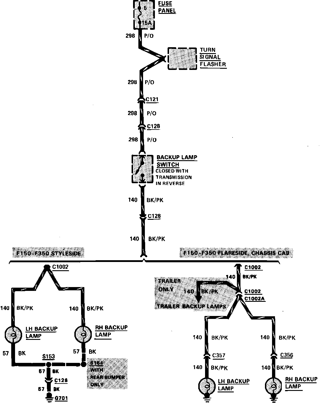 Fig. 5A Back-Up Lamp Wiring Circuit. F150-350: