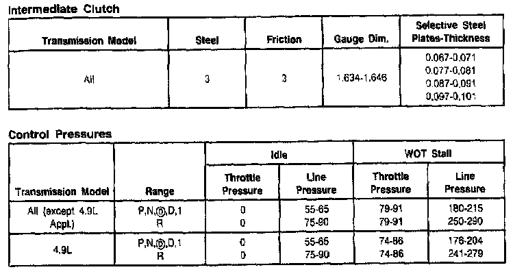 AOD 4-spd A/T, Intermediate Clutch/Control Pressure: