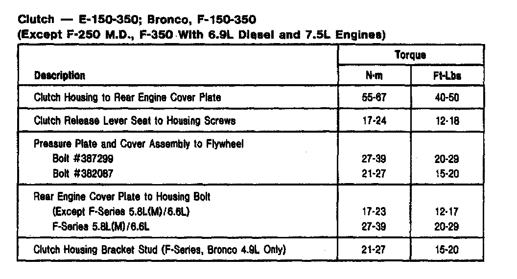 Borg-Warner T18 4-spd M/T, Clutch Torque (F150-350, Bronco):