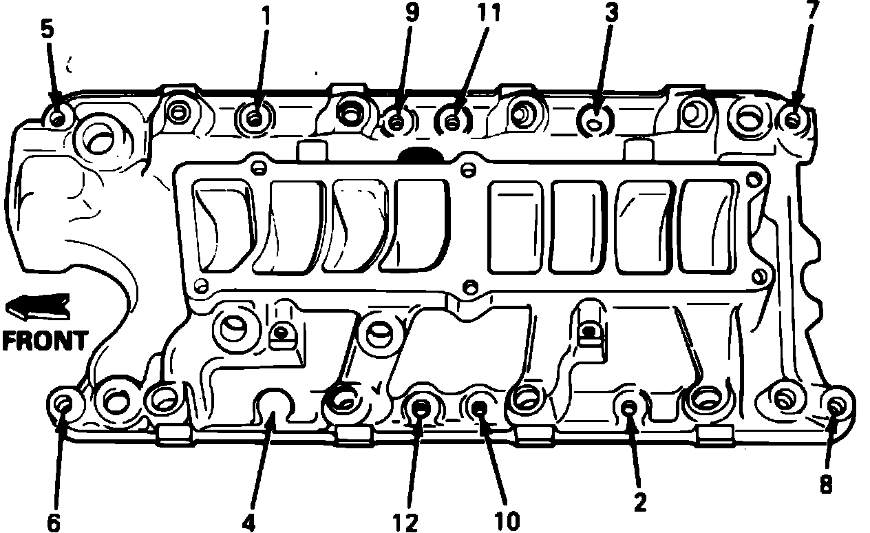19. Remove lower intake manifold attaching studs and bolts, then the lower intake manifold assembly.