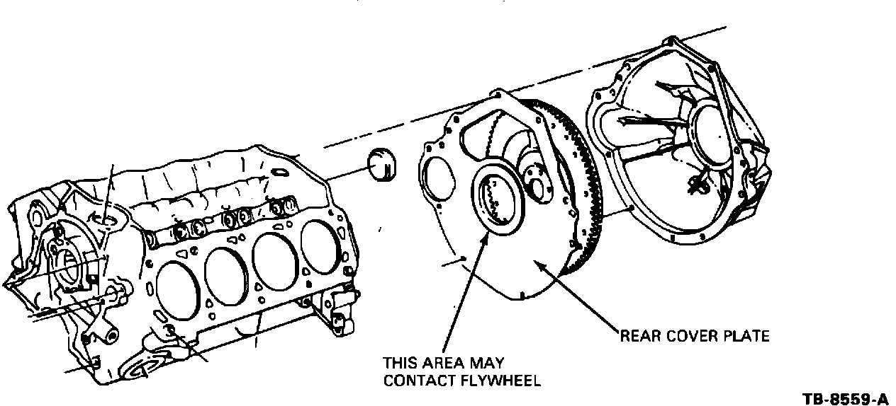 1. Remove engine rear cover plate, by referring to the procedure in the 1986 Light Truck Shop Manual.