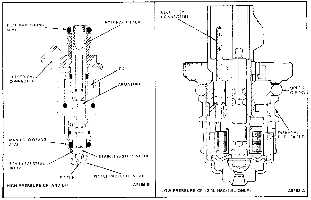NOTE: Low pressure injectors have low coil resistance. High pressure injectors can have either high or low coil resistance. Function can be adversely affected by using the wrong injectors.