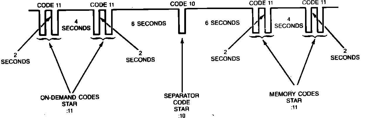 c. A six second pause is next, followed by a single sweep of the voltmeter needle representing the separator code. Another six second pause follows the separator code.