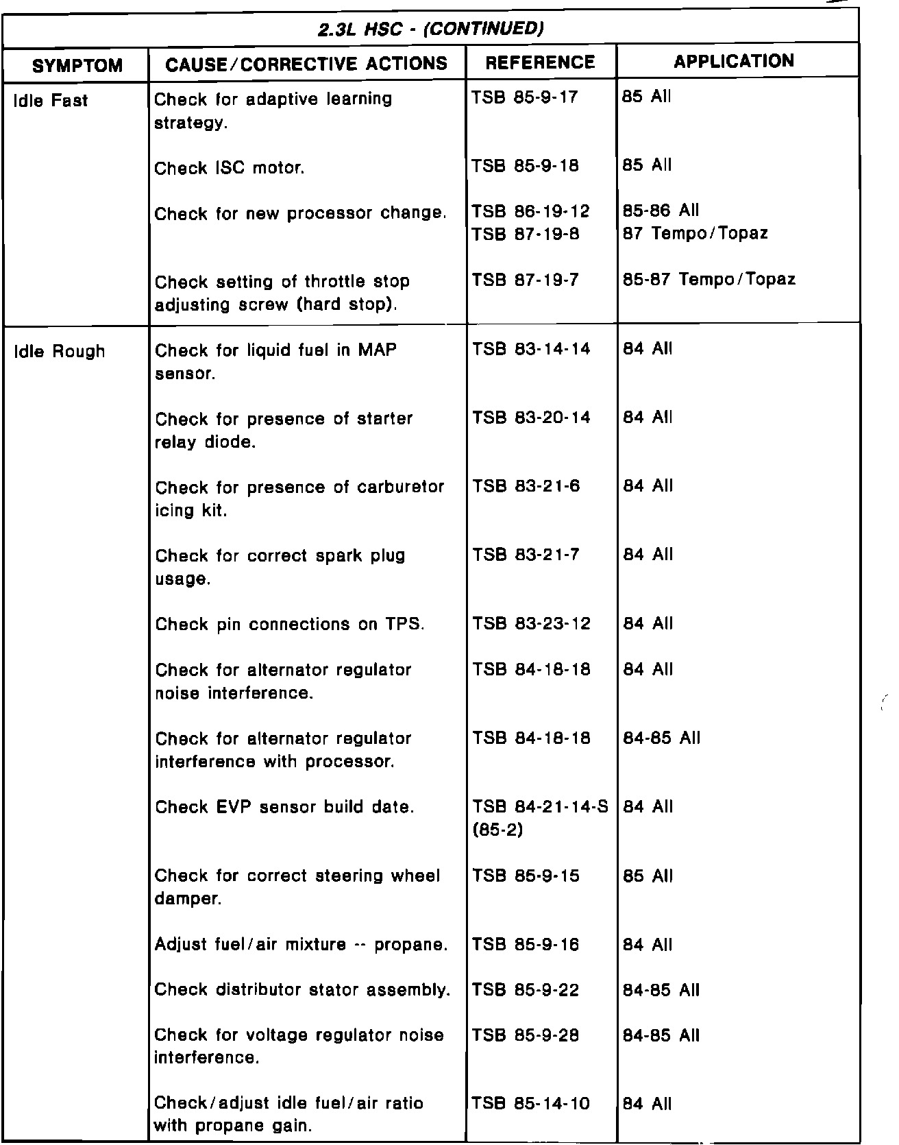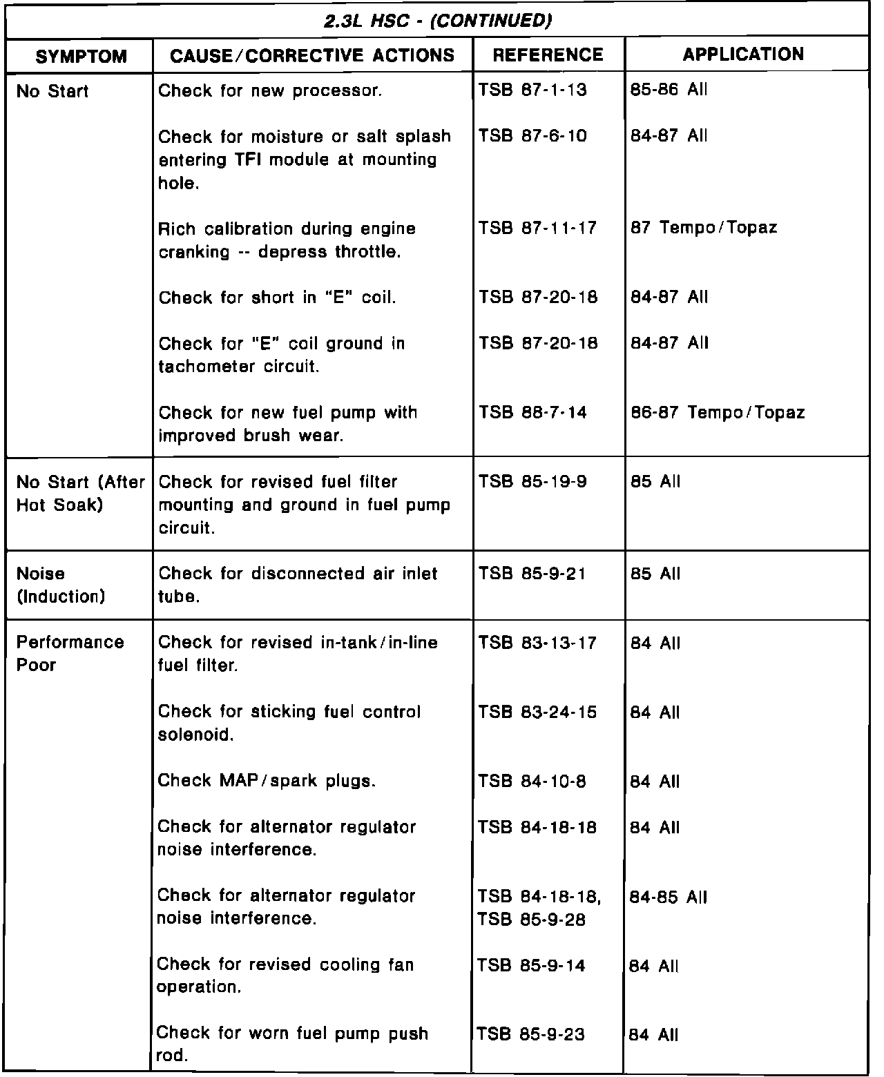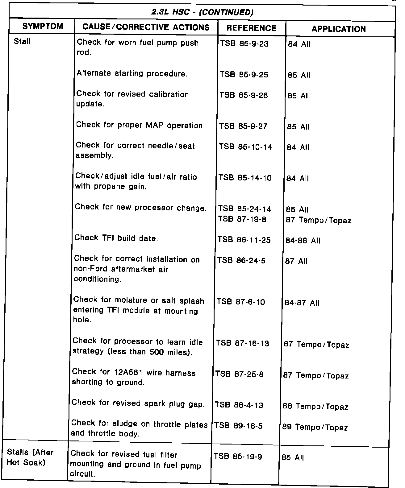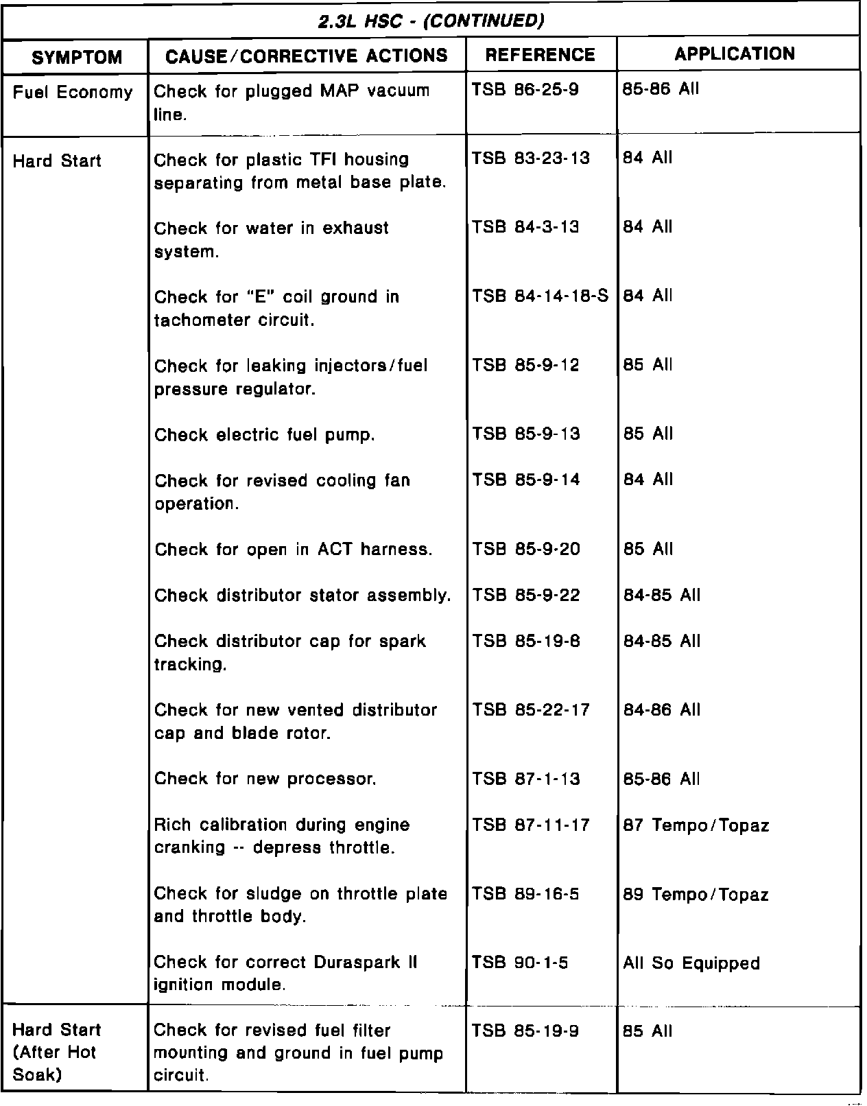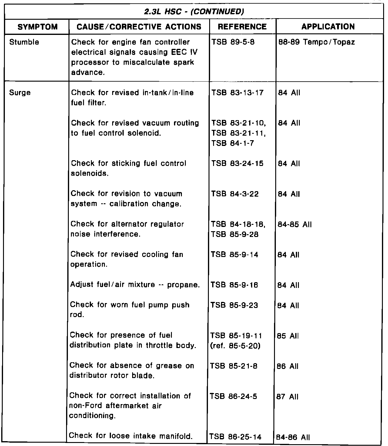 Driveability TSB's - Summary