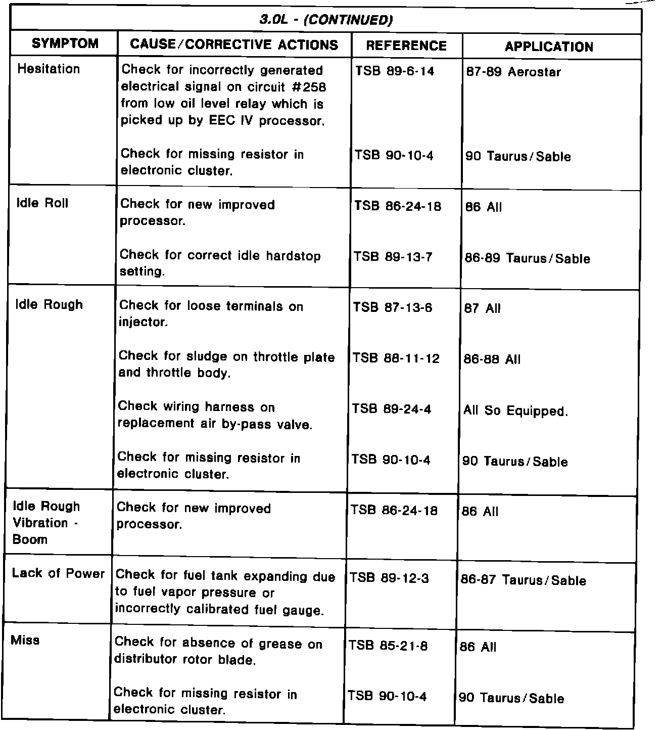 Driveability TSB's - Summary