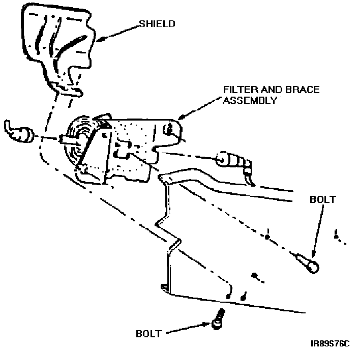 1. Refer to Figure 3. Remove the three bolts holding the fuel filter bracket to the frame. Retain one bolt for subsequent use.
