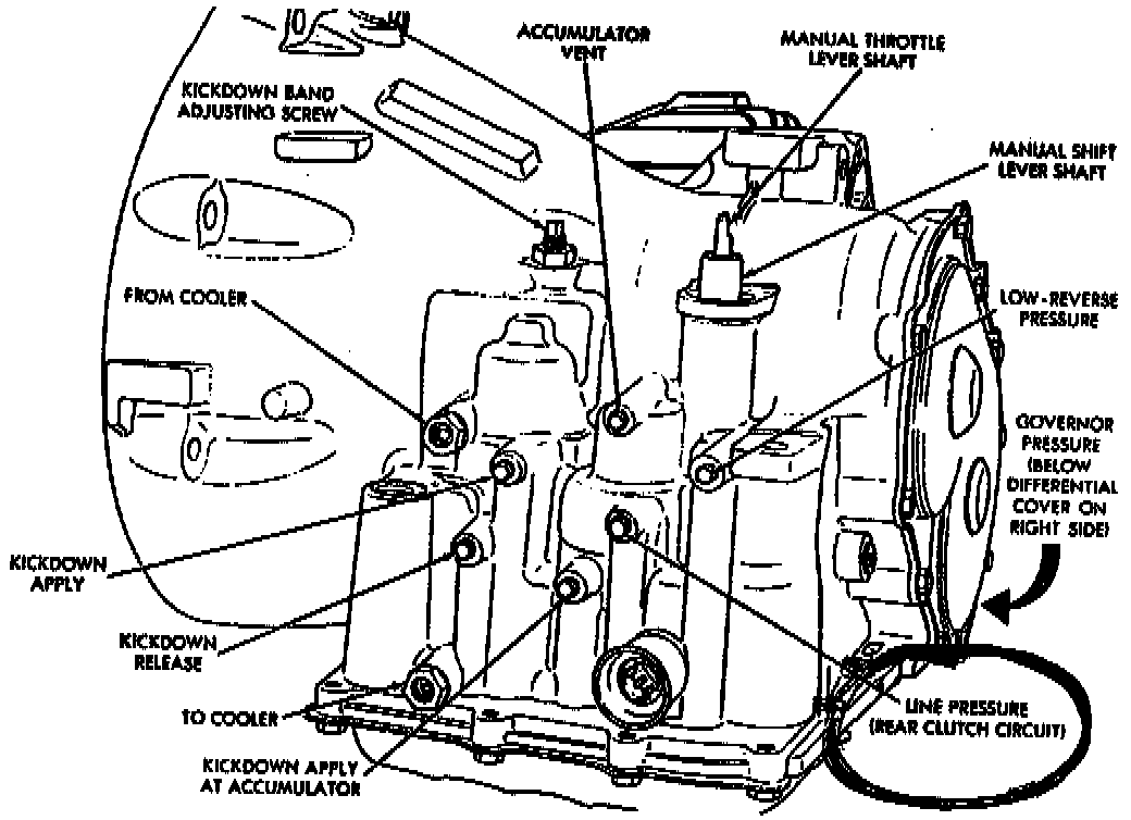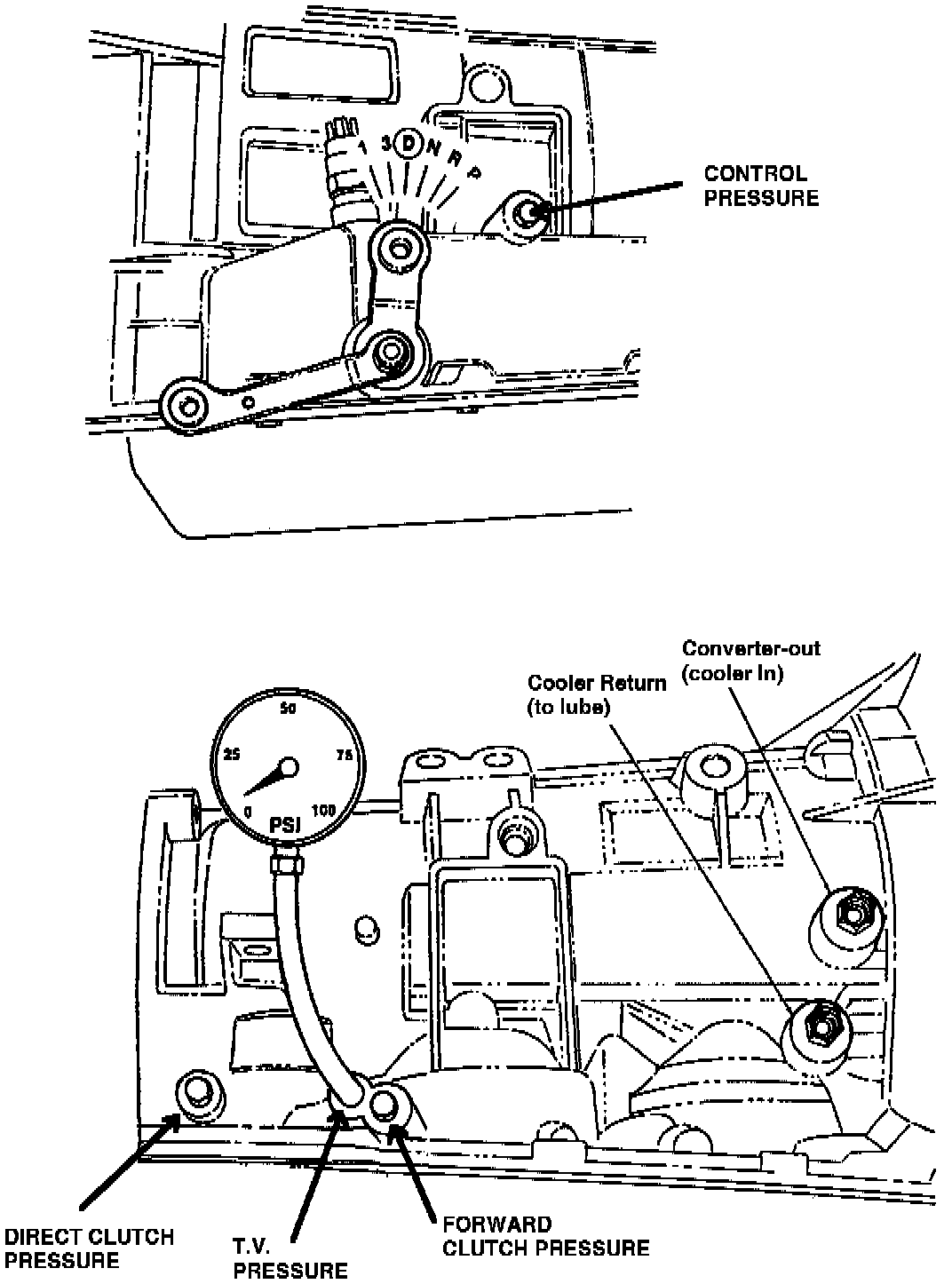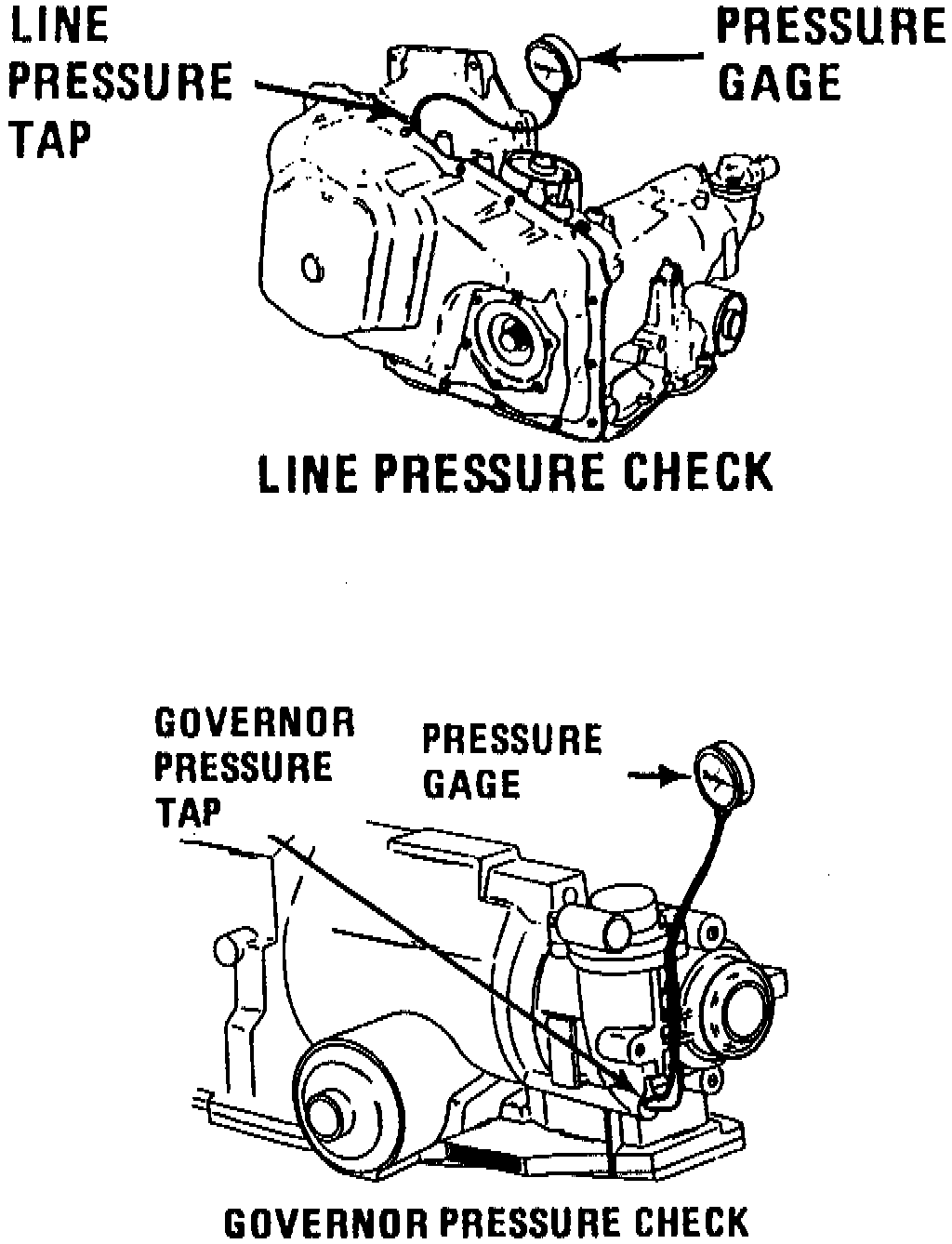 The following illustrations will indicate pressure taps for the above mentioned transmission units.