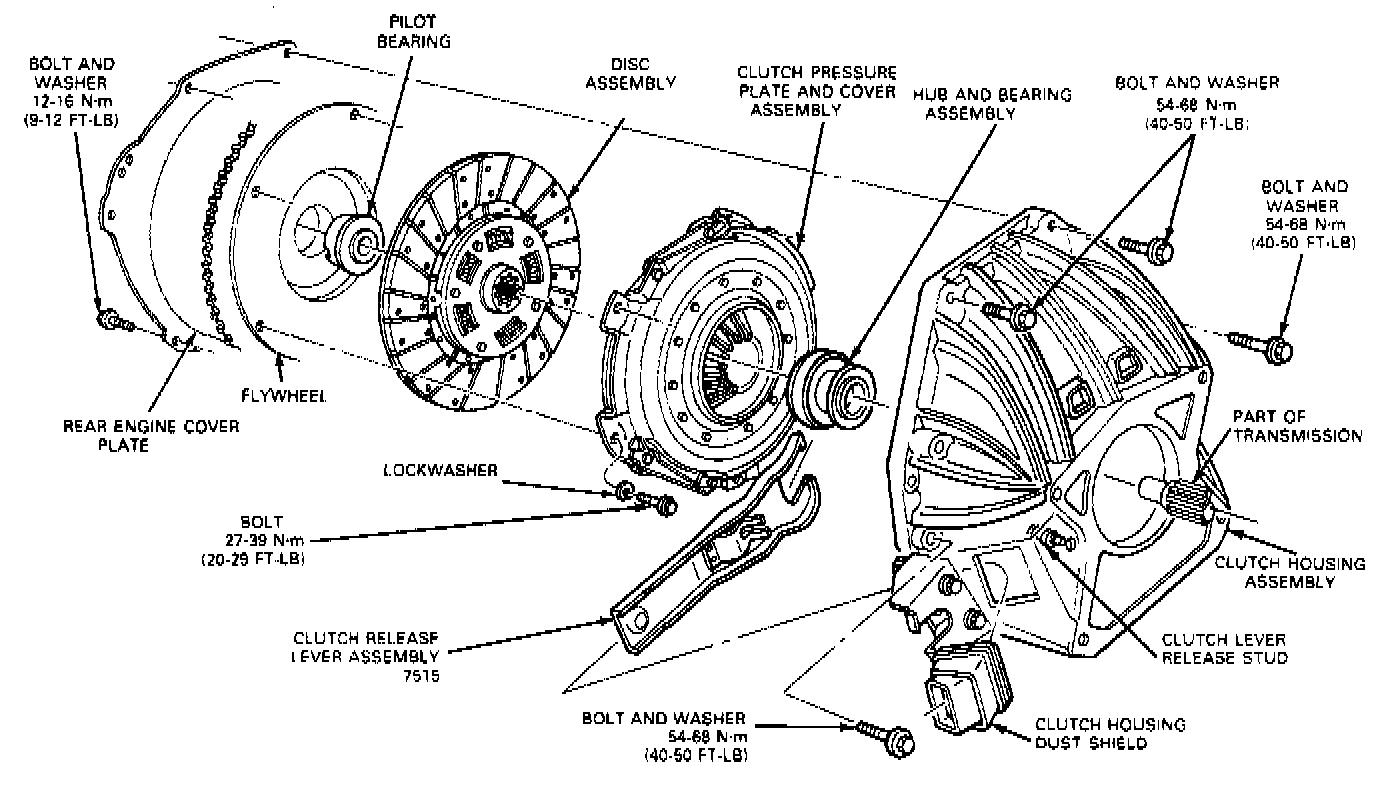 2. When re-installing the original pressure plate and cover assembly, align the assembly and flywheel according to the marks made during the removal operations. Position the pressure plate and cover assembly on the flywheel, align the pressure plate and disc, and install the retaining bolts that fasten the assembly to the flywheel. Tighten the bolts to specification and remove the clutch disc pilot tool.
