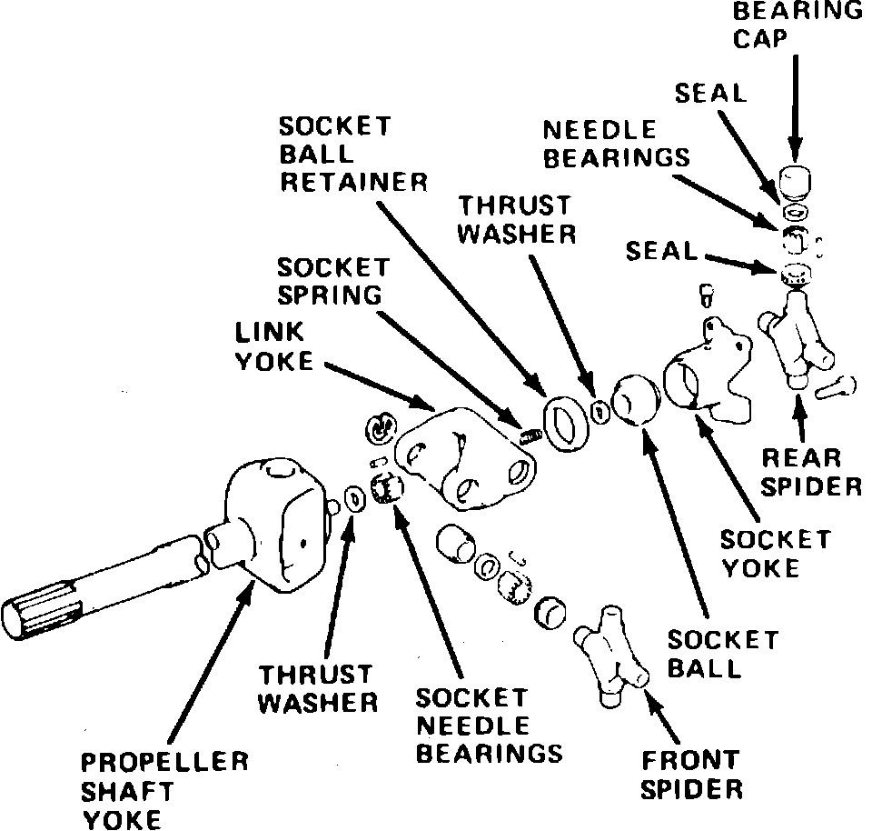 7. Remove bearing caps attaching rear spider to link yoke as outlined in step 3 above and remove spider and socket yoke from link yoke.