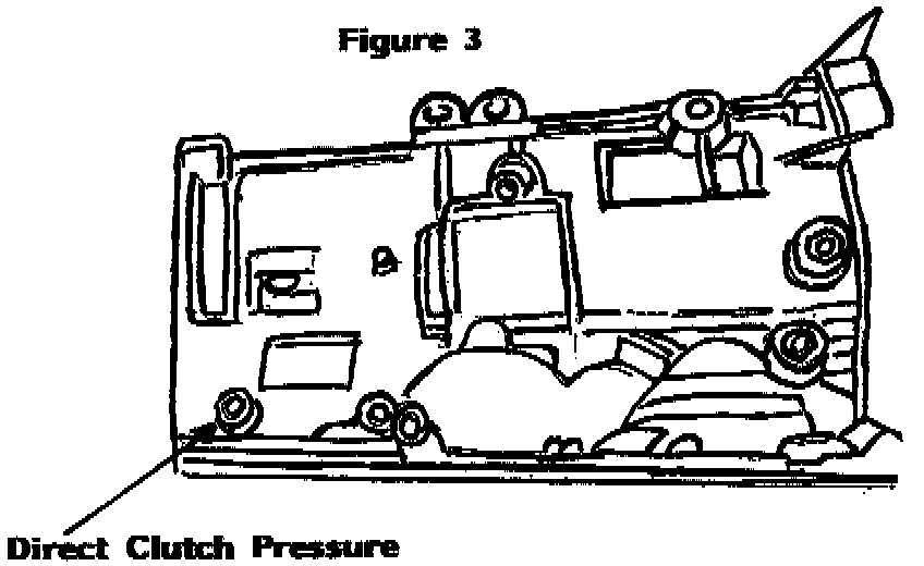 Connect a pressure gauge to the direct clutch pressure tap (see figure 3). Accelerate vehicle to approximately 40 mph in the overdrive position on the selector (or above the speed where it would normally apply third gear).