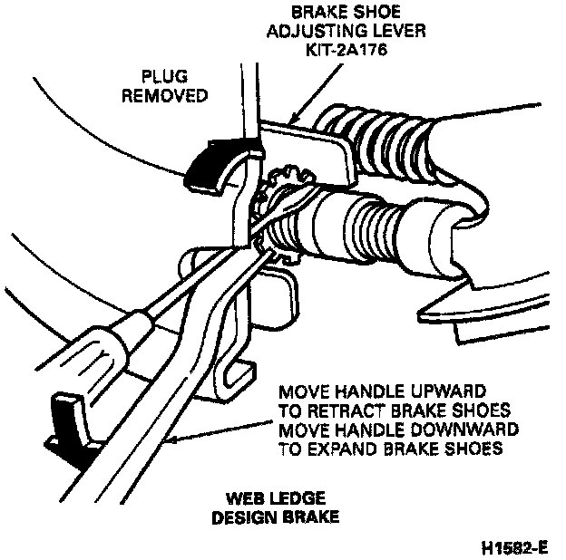 If the brake adjuster screw was loosened, check to be sure the brake shoe adjusting lever is still properly seated In the shoe web.