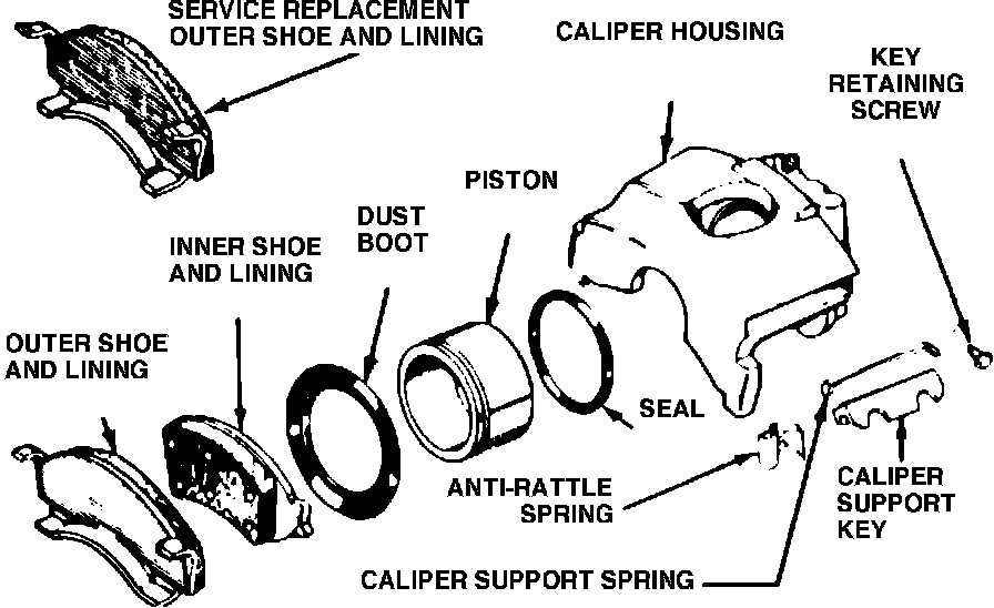 Fig. 3 Exploded view of disc brake caliper assembly: