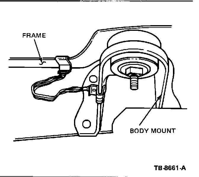 1. Between the frame and body, across the body mount located behind the RF wheel well. (Refer to Figure 15)