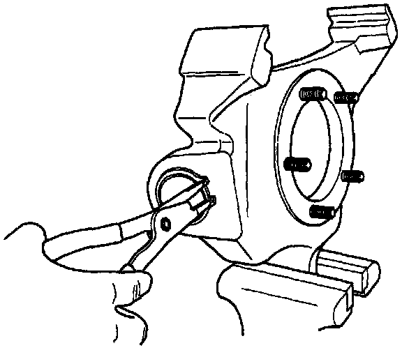 6. Secure the knuckle in a vise. Remove the snap ring from the lower ball joint.