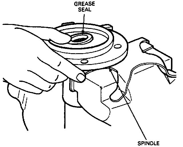 3. Remove the nuts retaining the spindle to the knuckle. Lightly tap the spindle with a rawhide hammer to remove it from the knuckle.