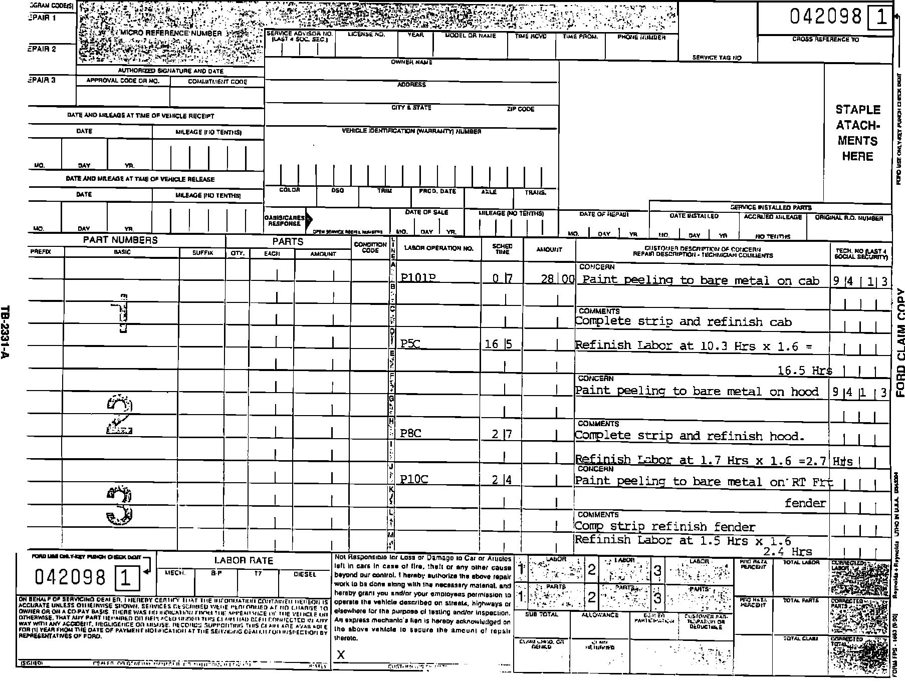 The claiming instructions shown in Figure 1 are applicable to the repair of the EXTERIOR COLOR PEELING FROM ULTRA VIOLET LIGHT concern covered in this TSB only. See the SAMPLE CLAIMS, Figures 2 and 3, for examples.