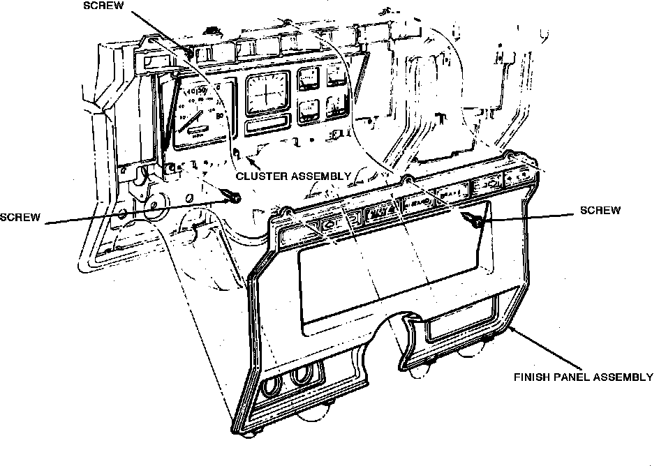 6. On all models, remove cluster finish panel and the 4 cluster attaching screws, Fig. 10.