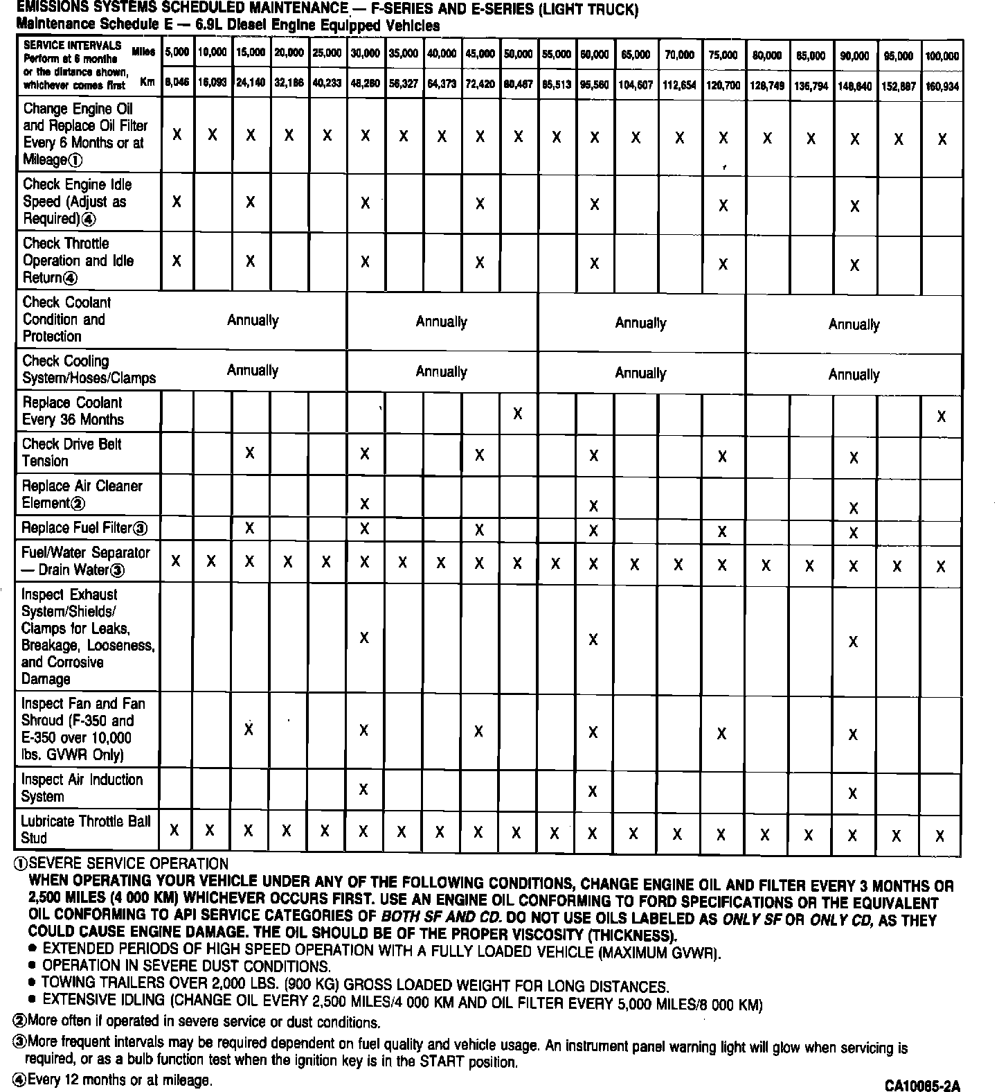 Maintenance Schedule "E" - 6.9L Diesel Engine Equipped Vehicles The "E" maintenance schedule is used for the following Diesel Engine Equipped Vehicles: