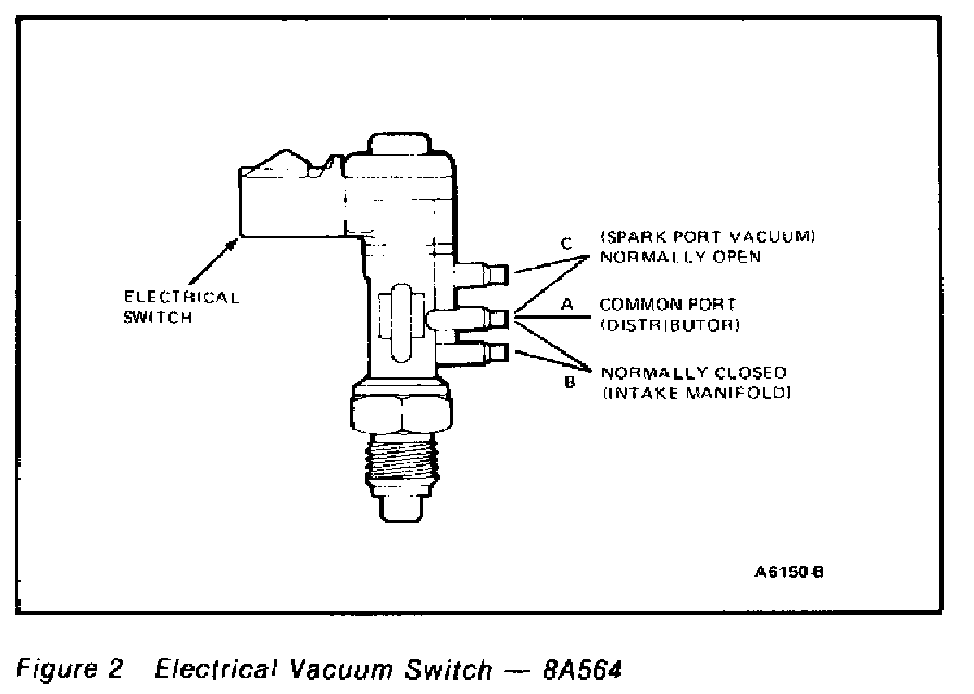 The electrical vacuum switch (Figure 2) could be either opened or closed at room temperature. It will be reversed (opened to closed or closed to opened) with the engine at full operating temperature.
