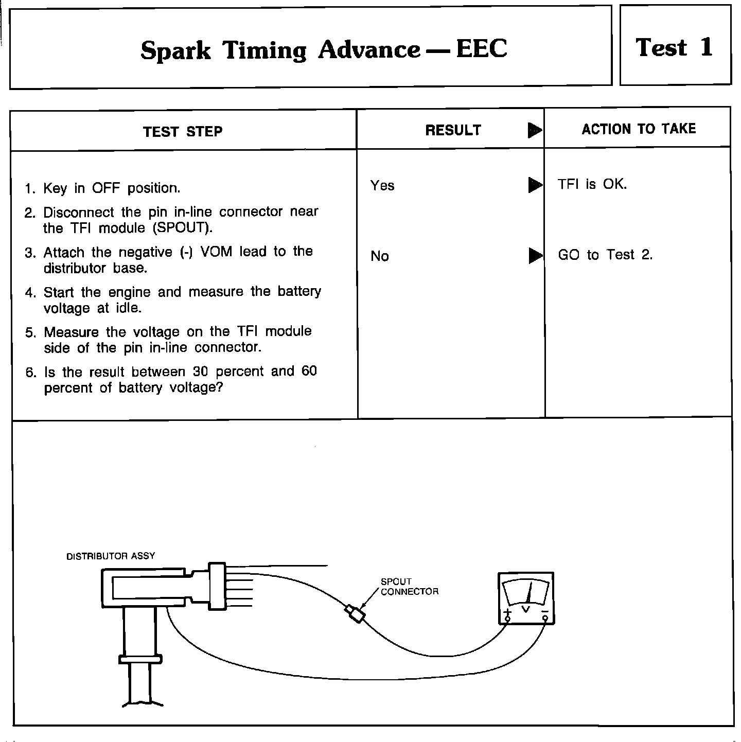 5. Reconnect single wire in-line spout connector or reinstall the shorting bar on the double wire spout connector. Check timing advance to verify distributor is advancing beyond the initial setting. If it is not, refer to Computed Timing Check.
